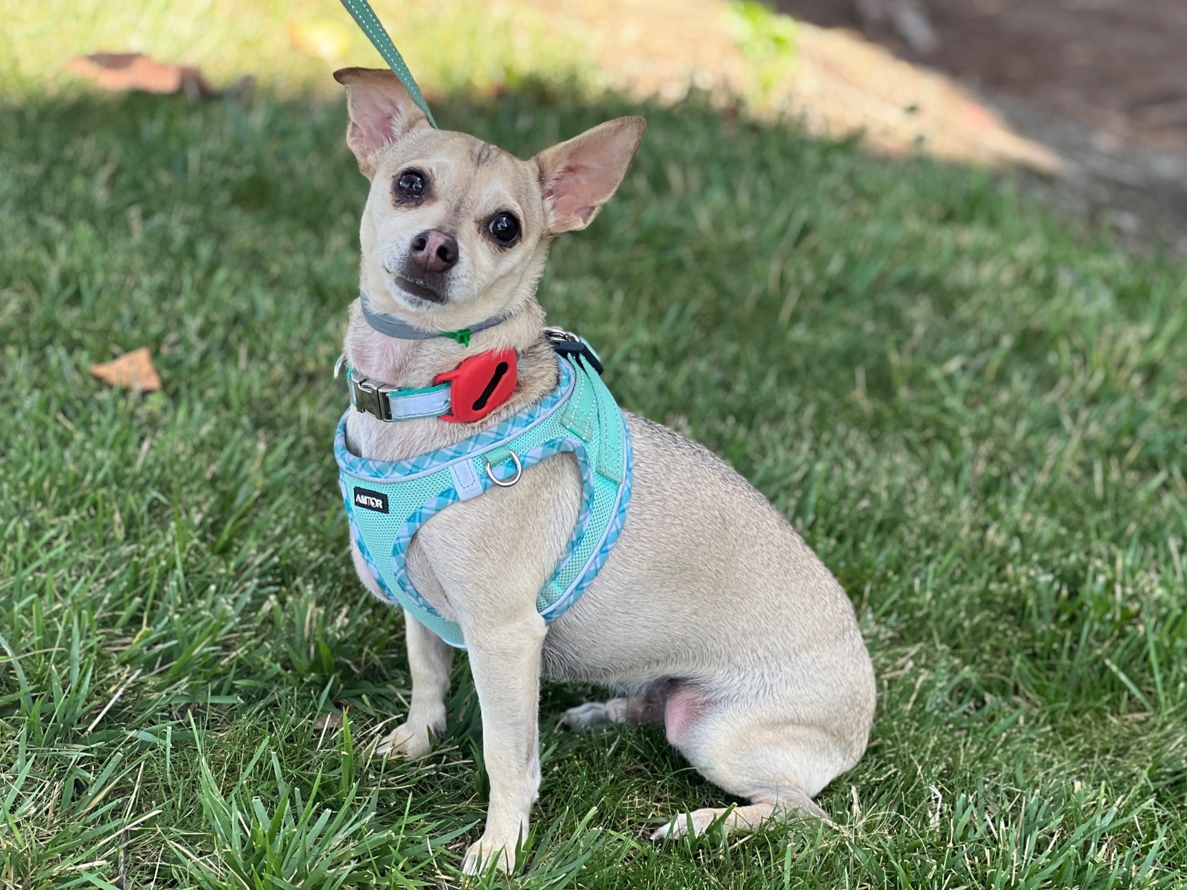 Joey is a sweet but very timid boy. He is very affectionate once he trusts his human, though he warms up to his foster siblings quickly. While he is playful with the younger dogs, his favorite past-time is snuggling with his 87 pound foster brother, an aging pitbull mix. He likes chew toys, snacks and TV watching while snuggling up to his humans (on the bed or sofa if he has his way).